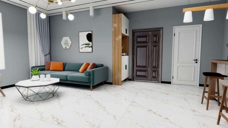 Сочетание благородного песочно-золотистого и мягкого серо-бежевого оттенков. Это делает холодный камень более «уютным» и позволяет ему сочетаться с деревом, золотой фурнитурой или латунными элементами в интерьере.