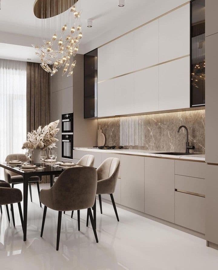 Доминирующий серо-бежевый оттенок (тауп) с вкраплениями светло-серого и песочного цветов. имитацию природного камня, сочетающую в себе элементы мрамора, бетона и травертина.