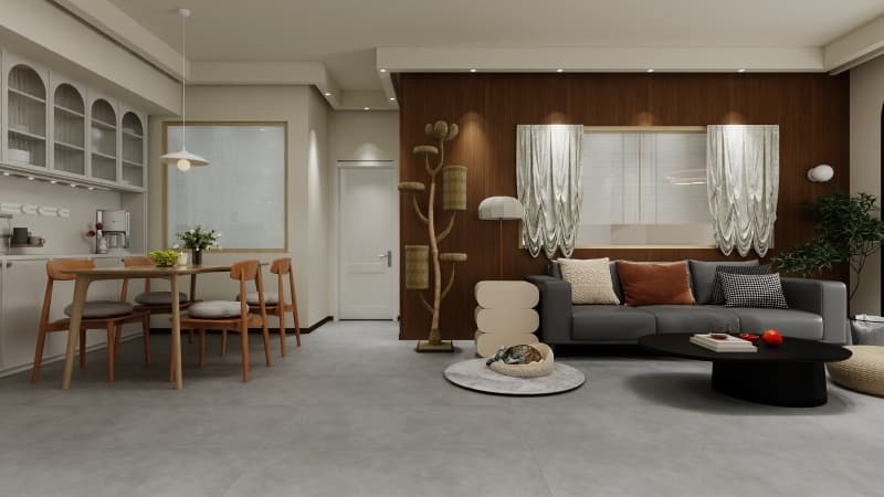 Этот керамогранит воплощает философию современного минимализма. Глубокий серый оттенок с мягкими тональными переходами воссоздает эстетику натурального бетона, лишенного грубости. Матовая поверхность поглощает свет, создавая в интерьере атмосферу спокойствия и уверенности. Рисунок с деликатными «облачными» разводами придает покрытию визуальный объем, делая его идеальным фоном как для ярких дизайнерских акцентов, так и для монохромных пространств в стиле лофт или хай-тек.