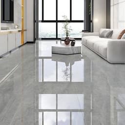 керамогранит с глубоким глянцем имитирует серый мрамор.