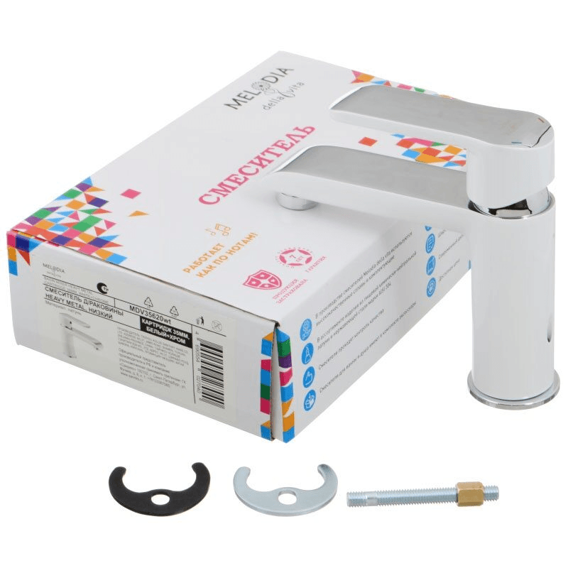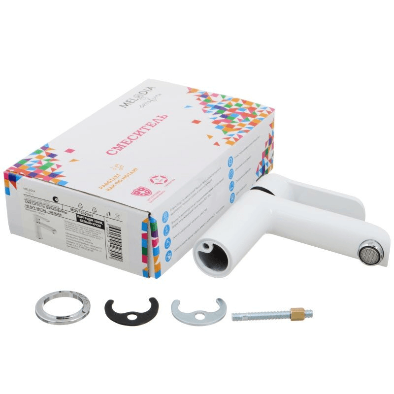 Корпус латунь/цинковая ручка, 35 мм картридж Ju Teng, NEOPERL поворотный аэратор (без водосберегающей функции), латунная гайка картриджа, без гибкой подводки и донного клапана, покрытие смесителя белый+хром.