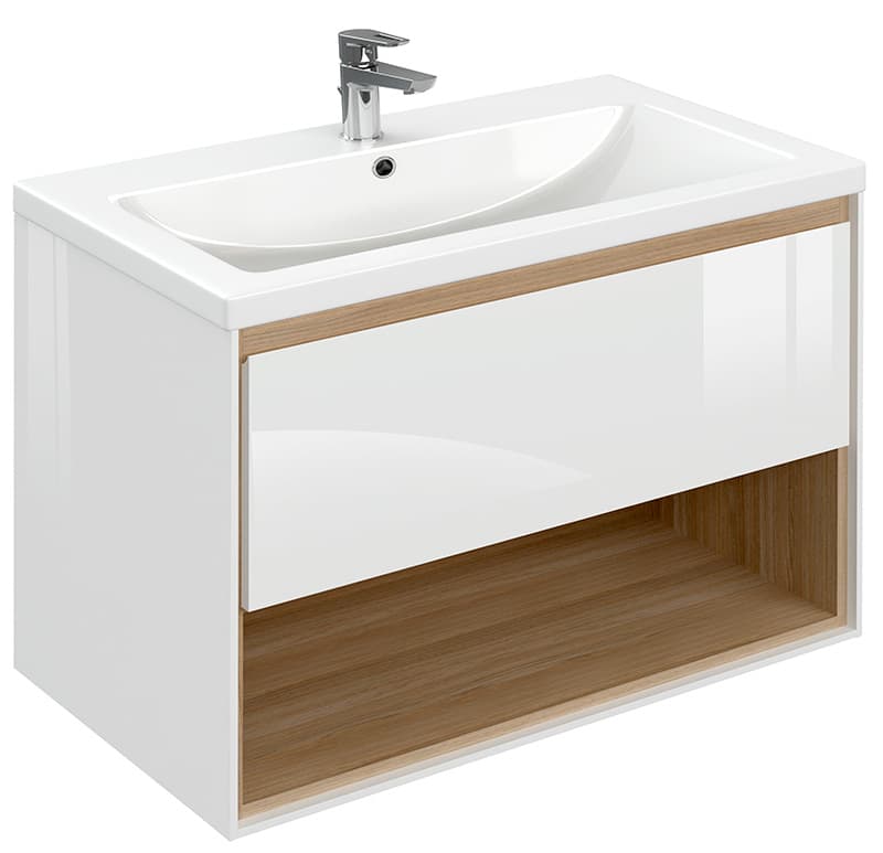 LOUNA – это коллекция, отвечающая последним тенденциям рынка. Основной отличительной особенностью коллекции является её дизайн – сочетание белого с деревом, фрезерованная ручка, выдвижной ящик и удобная открытая полка для хранения. Умывальник приобретается отдельно.