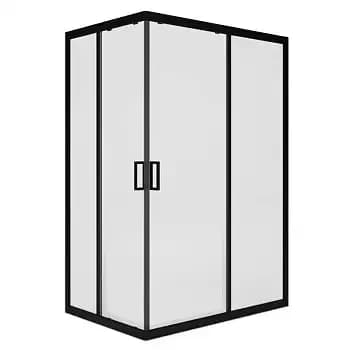 Душевое ограждение состоит из высокопрочного алюминиевого каркаса, покрытого порошковой краской черного цвета, по которому на роликах перемещаются створки.