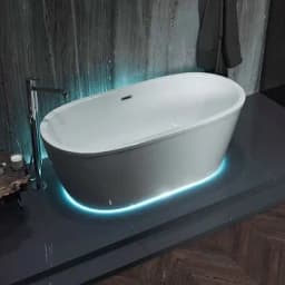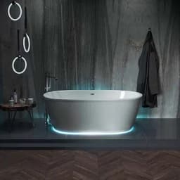Отдельностоящая ванна Tondo - дизайнерское решение для ванной комнаты. Благодаря овальной форме и встроенной панели из 100% литьевого акрила ванна осовременит интерьер ванной комнаты. Отдельностоящую ванну можно установить максимально эффектно. Также важно заметить, что ванна поставляется с установленными рамой, панелью и сливом-переливом. Слив-перелив оборудован системой click-clack, решетка перелива хромированная.